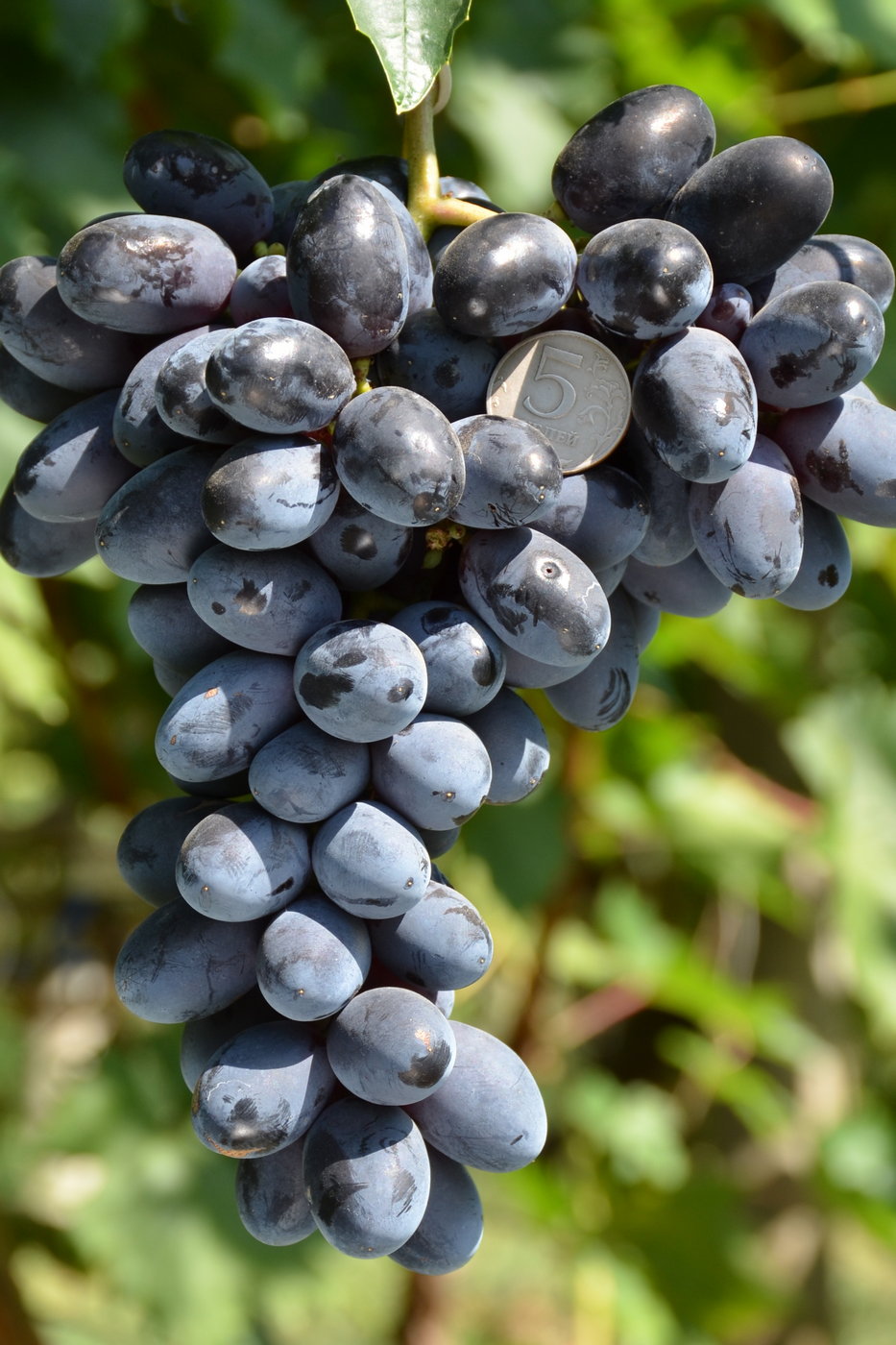 Селекция Калугин В.М. Сверхранний — 95-100 дней. Сильнорослый, урожайный. Цветок обоеполый. Грозди цилиндро-конической формы, средней плотности, весом 600-1000 г., без горошения, очень привлекательного внешнего вида. Ягоды черные, удлиненно-овальной формы, весом 12-14 г., приятного гармоничного вкуса, хорошо сохраняются на кустах после созревания. Мякоть плотная, немного хрустящая, очень приятной консистенции, кожица легко съедаемая. Сахаронакопление высокое. Растрескивание ягод после сильных дождей не наблюдалось. Вызревание побегов хорошее. Обрезка на плодоношение на 6-8 глазков. Морозоустойчивость -22°С. Устойчивость к основным болезням средняя.