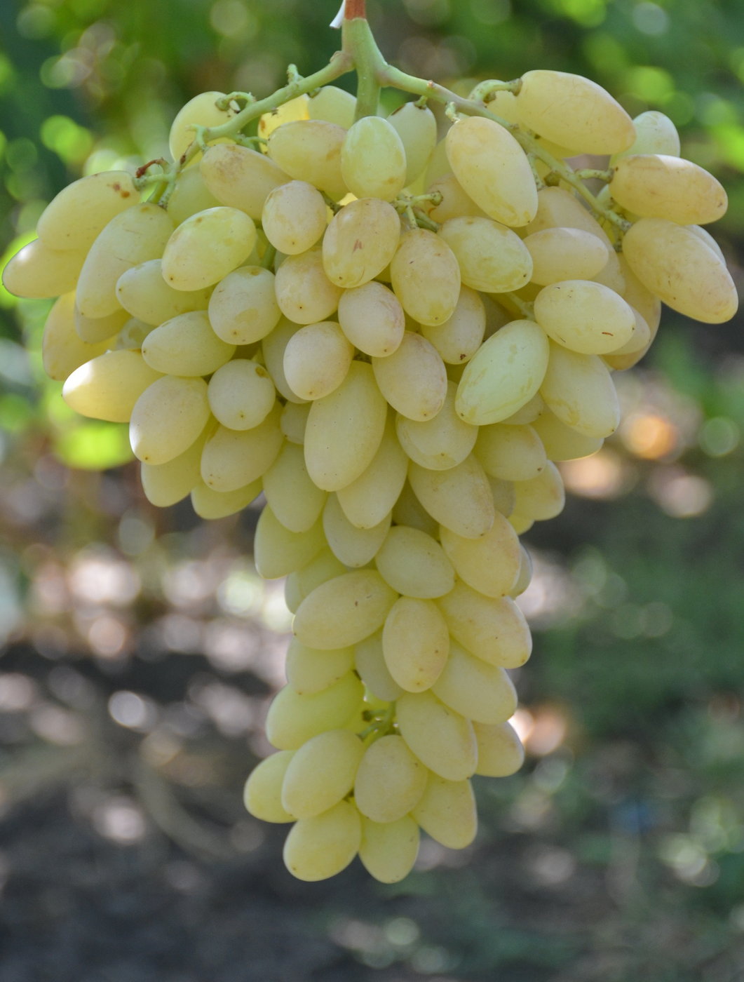 Селекция США. 1-2 класс бессемянности. Ранне-средний- 125-135 дней. Очень сильнорослый. Цветок обоеполый. Грозди конической формы, средней плотности, весом 800-1500 грамм (до 2 кг), очень красивые, нарядные. Ягоды белые, овальной формы, весом 6-8 грамм, очень приятного гармоничного вкуса, хорошо сохраняются на кустах после созревания. Мякоть плотная, хрустящая, кожица при еде не заметна. Сахаронакопление высокое. Вызревание побегов очень хорошее. Обрезка на плодоношение на 6-10 глазков. Морозоустойчивость -21°С. Устойчивость к основным болезням средняя. Транспортабельный. Один из самых крупноягодных кишмишей в современном сортименте.