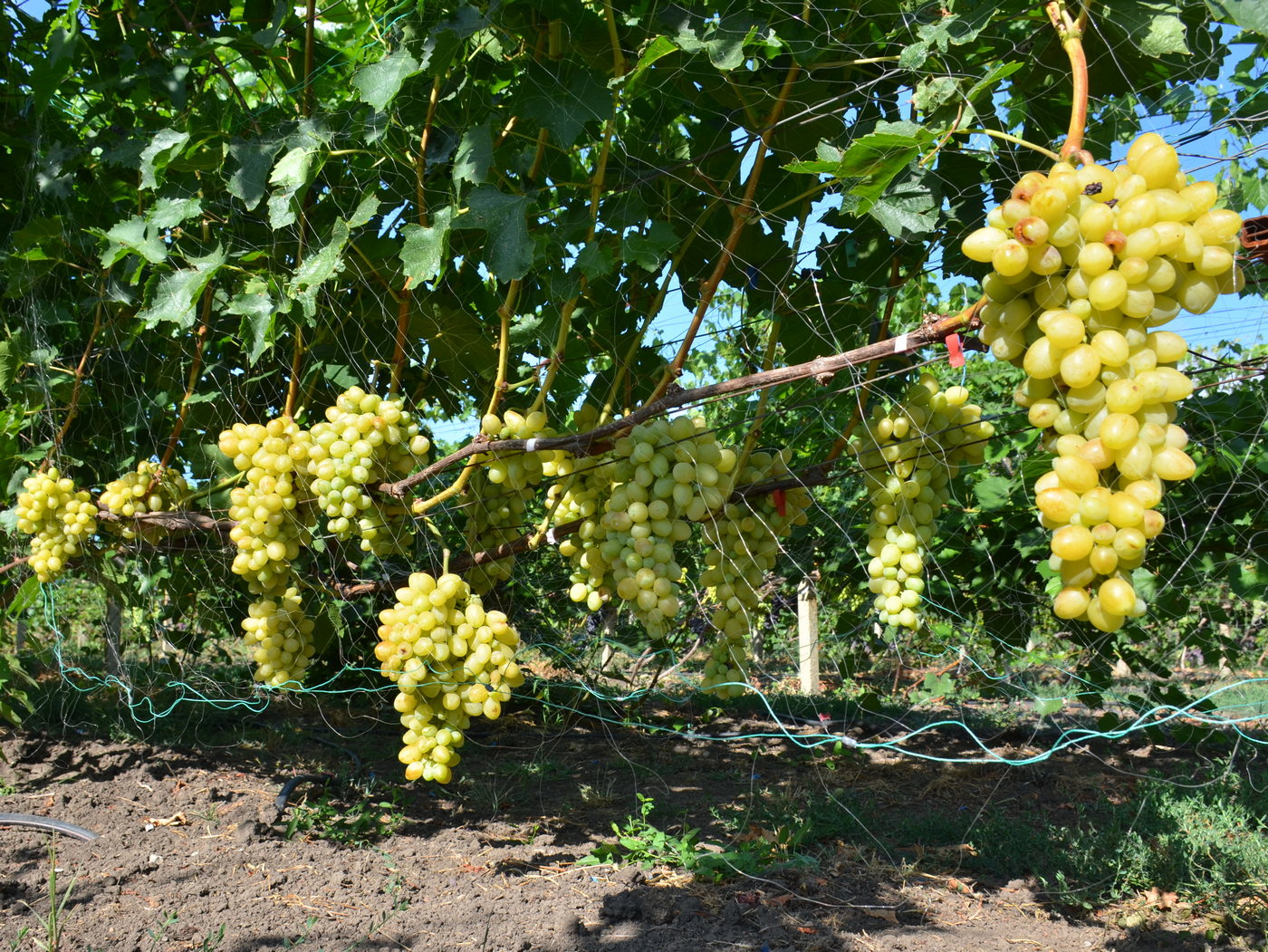Селекция Калугин В.М. Сверхранний — 95-100 дней. Сильнорослый, очень урожайный. Цветок обоеполый. Грозди цилиндро-конической формы, средней плотности, весом 700-1000 г., без горошения, очень привлекательного внешнего вида. Ягоды белые, на солнце с золотистым оттенком, овальной формы, весом 12-14 г., очень приятного мускатного вкуса, хорошо сохраняются на кустах после созревания. Мякоть мясистая, упругая, очень приятной консистенции, кожица легко съедаемая. Сахаронакопление высокое. Растрескивание ягод после сильных дождей не наблюдалось. Вызревание побегов хорошее. Обрезка на плодоношение на 4-6 глазков. Морозоустойчивость -22°С. Устойчивость к основным болезням средняя.